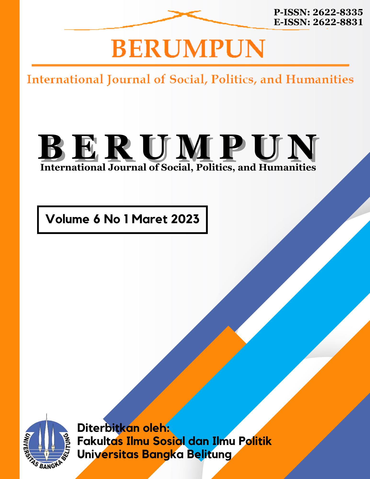 Vol. 3 No. 2 (2020)Berumpun: International Journal of Social, Politics, and Humanities (p-ISSN: 2622-8335 | e-ISSN: 2622-8831) is a scientific, peer-reviewed, and open-access journal published by Faculty of Social and Political Sciences University of Bangka Belitung, Indonesia. The journal aims to be an open-access journal platform that publishes and disseminates the ideas and researches on Social, Political, and Humanities.